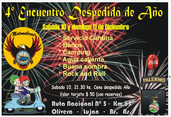 los esperamos para despedir el aos, junto a aquellos amigos de ruta que alguna vez fueron o son parte del club amigos motomeleros, integran alguna tribu motomelera o agrupacion amiga.-