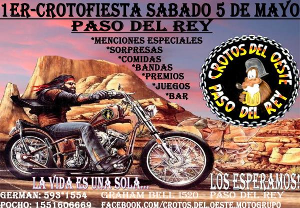 1 motorock de crotos del oeste en la que festejamos nuestro 3 aniversario.desde las 18hs hasta que se vaya el ultimo