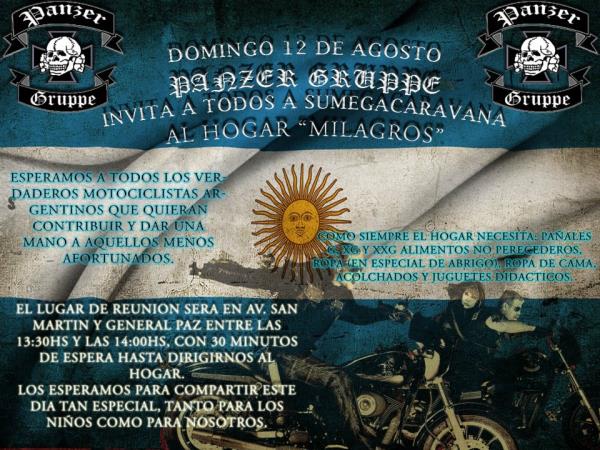 caravana solidaria la hogar de chicos discapacitados milagros.lugar de reunion de la caravana:av gral paz y san martin.(carrefour).13 hs puntual.de ahi en caravana llevando las donaciones al hogar milagros.