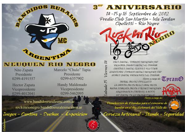 viernes 14... noche heavy:caosvalkyriacautivosexentoriomurostyranosabado 15 todo el rock de la patagonia:triballa grinfareina scarlatamaquinacionmcraizur