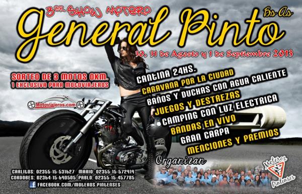 motoencuentro a realizarse los dias 30 - 31 de agosto y 1 de septiembre organizado por moteros pintenses.. habra shows en vivo, juegos, caravana por la ciudad, sorteos y demas, los esperamos para pasar 3 dias geniales!