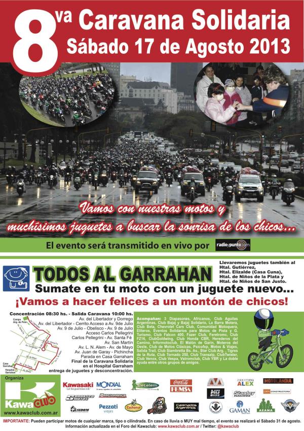 convocamos entonces a todos los motociclistas sin distingos de marcas, tipos o cilindradas a que participen de esta caravana y a llevar un juguete, un rato de alegría y un mensaje de esperanza al corazón de miles de chicos que atraviesan problemas de salud de diversas gravedades.