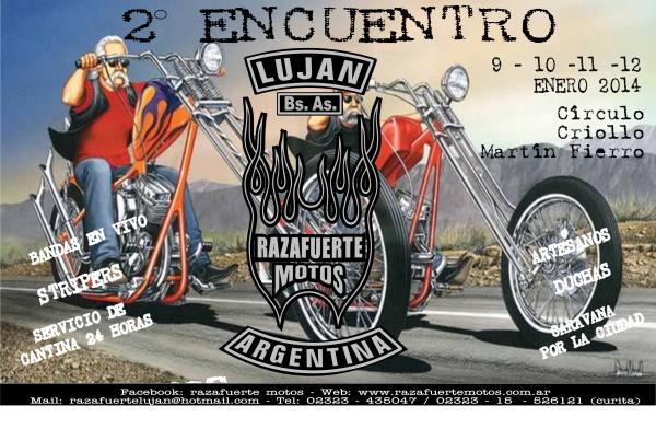 no te podes perder el 2 encuentro razafuerte motos!! volveremos a rugir los motores en nuestra ciudad!! un encuentro al mejor estilo razafuerte!!!* bandas en vivo* stripers* artesanos* caravana por la ciudad* cantina las 24hs, con muy buenos precios!!!* y mas..!!!