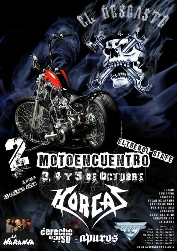 un fin de semana a puro rock y heavy metal, con la presencia de horcas, la naranja, fierro, derecho de piso, apuros y muchas mas bandas, esmerado servicio de cantina(24hs) y buffet, streepers, la animacion de el pelado juan de san luis, juegos, caravana por la ciudad, baos, duchas, el mejor sonido, las mejores luces, parrilleros, mucha sombra, muy buen lugar para acampar, y la mejor predisposicion para lo que necesiten!!!!