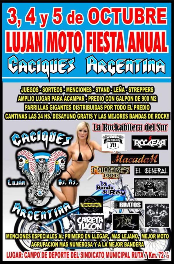 juegos - sorteos - menciones - stand - lea - streppersamplio lugar para acampar - predio con galpon de 900 m2parrillas gigantes distribuidas por todo el prediocantinas las 24 hs. - desayuno gratis y las mejores bandas de rock!!