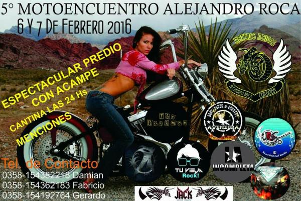 motoencuentro con la camaradera y atencin que nos caracteriza. recepcin, juegos, caravana, shows, buenas bandas de rock en un gran escenario, menciones y regalos. cantina full time, predio p/ acampe con asadores, baos, lea gratis y mucho mas!!! no se suspende por llivia. predio preparado para disfrutar y hasta dormir bajo techo en caso de inclemencias meteorologicas.