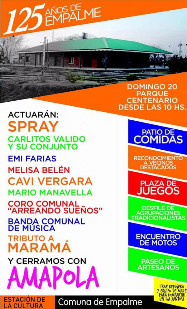 la comuna de empalme villa constitucion realiza una gran fiesta por sus 125 aos del pueblo y inagure un predio nuevo parque centenario.por intermdio de nuestra agrupacion pata de penca queremos invitar a todos para pasar un dia con amigos, familias y muchas motos