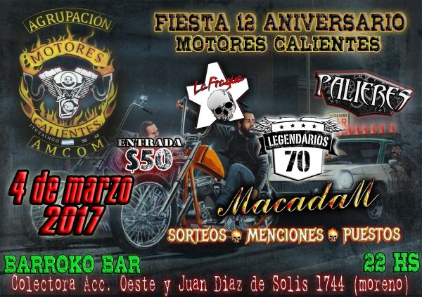 fiesta 12 aniversario de motores calientes, te esperamos para compartir nuevamente junto a nosotros tantos años de amistad y rutas