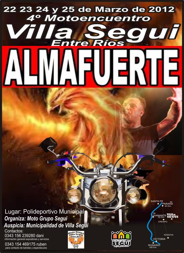 almafuerte en vivo!!! y el mejor rock and roll y blues del pais.ya vamos a ir agregando toda la data de esto que esta hecho y pensado para que vivas en villa segui, momentos inolvidables entre amigos.como siempre hacemos esto pensando en que sea una fiesta para toda la familia motera y que valga la pena cada kilmetro recorrido hasta villa segui.muchas motos - las chicas mas lindas - el mejor rock and roll y la cerveza barata. 5 cantinas-buenas duchas- 22 bandas increbles -