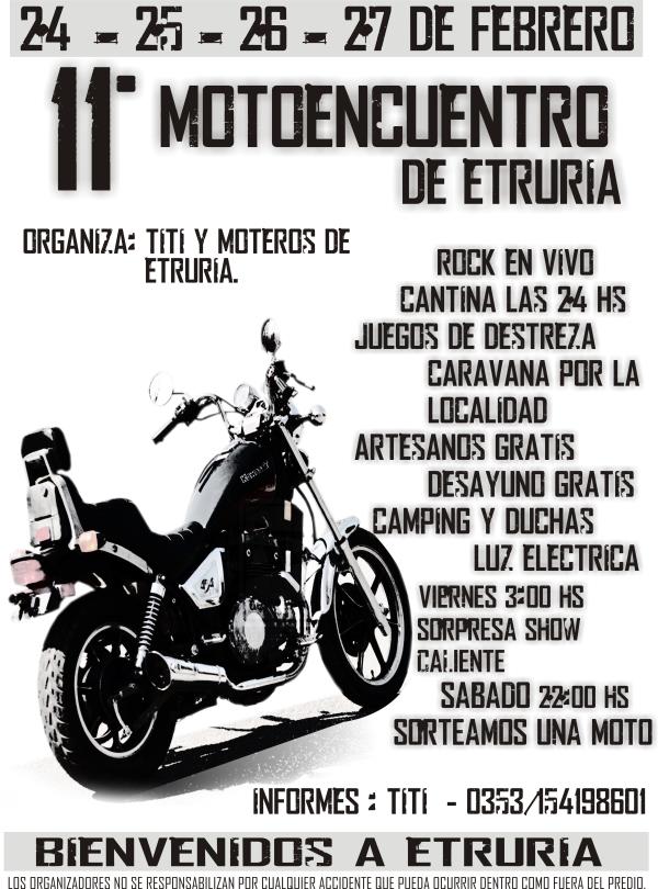 el titi se carga el encuentro al hombro con todas sus ganas y el apoyo de los moteros de etruria para que sea una gran fiesta y para continuar con este tradicional encuentro que nacio gracias al gordo y es por sus ganas y gran corazon que sigue para adelante... los esperamos a todos, daremos lo mejor para que se sientan como en casa...