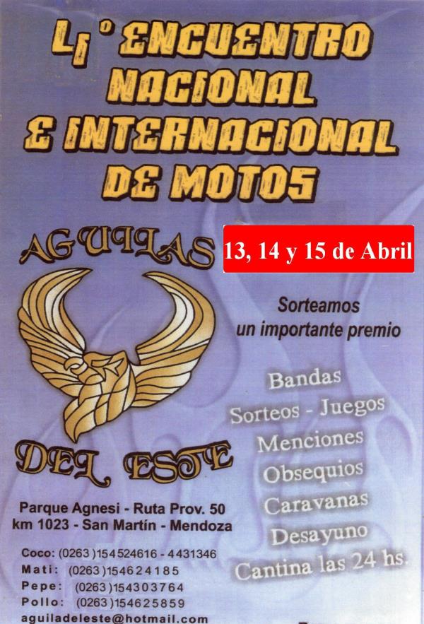 Motoencuentros.com, no se hace responsable por cualquier error u omisión en la información publicada como asi tambien de su contenido, recomendando a los usuarios y visitantes, confirmar la veracidad de la información publicada en Motoencuentros.com con los organizadores de los mismos.
