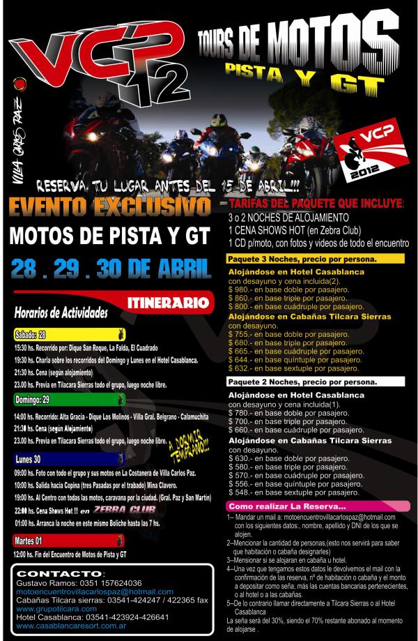 Motoencuentros.com, no se hace responsable por cualquier error u omisión en la información publicada como asi tambien de su contenido, recomendando a los usuarios y visitantes, confirmar la veracidad de la información publicada en Motoencuentros.com con los organizadores de los mismos.