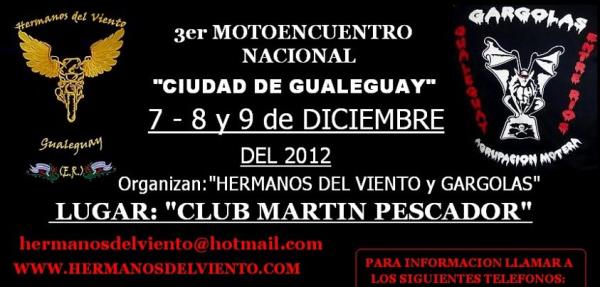 Motoencuentros.com, no se hace responsable por cualquier error u omisión en la información publicada como asi tambien de su contenido, recomendando a los usuarios y visitantes, confirmar la veracidad de la información publicada en Motoencuentros.com con los organizadores de los mismos.
