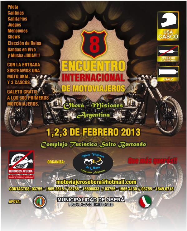 Motoencuentros.com, no se hace responsable por cualquier error u omisión en la información publicada como asi tambien de su contenido, recomendando a los usuarios y visitantes, confirmar la veracidad de la información publicada en Motoencuentros.com con los organizadores de los mismos.