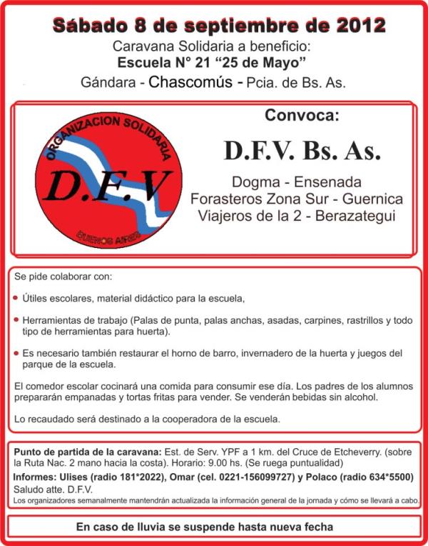 la caravana sale de 3 lugares : Ensenada , Gernica y Berazategui, para unirse en Cce.de Etcheverry en Ruta 2 km. 61 , mano a la costa estacion de servicio YPF , 9 HS. PUNTUAL . Los interesados en part
