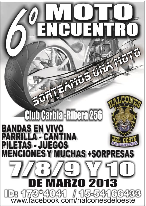 Motoencuentros.com, no se hace responsable por cualquier error u omisión en la información publicada como asi tambien de su contenido, recomendando a los usuarios y visitantes, confirmar la veracidad de la información publicada en Motoencuentros.com con los organizadores de los mismos.