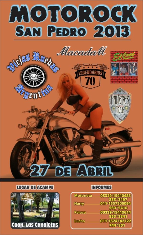 mucho rock and roll, motos y amistadhola amigos: viejas ruedas les pide por favor a todos los participantes de nuestro motorock que colaboren con un alimento no perecedero adems de la entrada; es en beneficio del merendero benefactora sampedrina de nuestra ciudad los cuales necesitan una mano de todos nosotros. hoy en da se estan alimentando 50 nios diariamente en este lugar. desde ya muchas gracias, los esperamos, un abrazo grande.