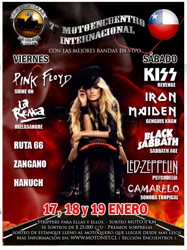7° encuentro internacional de motociclistas , donde se vive la pasión de las dos ruedas , los días 17 / 18 y 19 de enero 2014, las mejores bandas tributo del país , strippers para ellas y ellos, juegos, menciones, elección de reina y mas sorpresas.