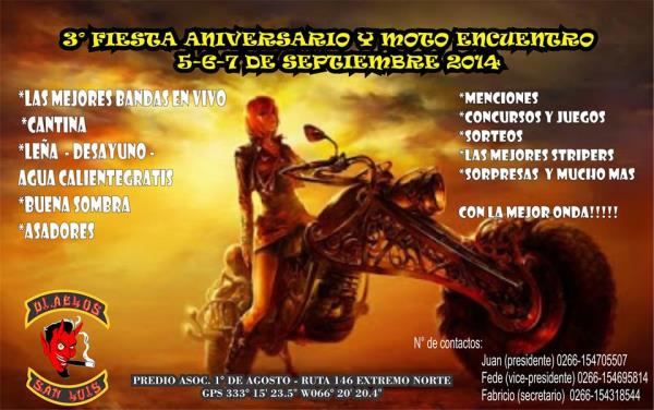 Motoencuentros.com, no se hace responsable por cualquier error u omisión en la información publicada como asi tambien de su contenido, recomendando a los usuarios y visitantes, confirmar la veracidad de la información publicada en Motoencuentros.com con los organizadores de los mismos.