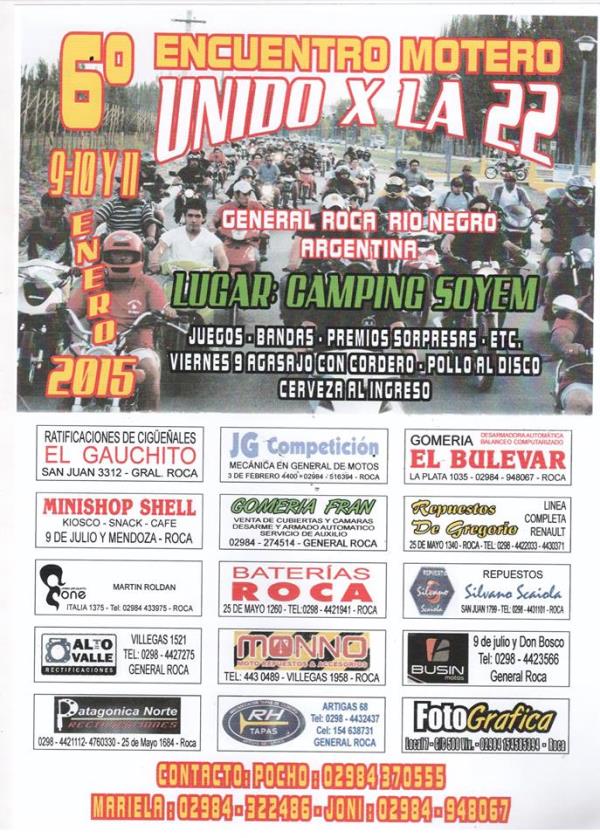 el evento se realiza en un predio cerca del rio donde tendrn la oportunidad de disfrutar del agua y la tranquilidad de la maana .abra parrillas ,lugar donde armar sus carpas y dejar sus motos con seguridad , abran bandas y mucho mas!!..............