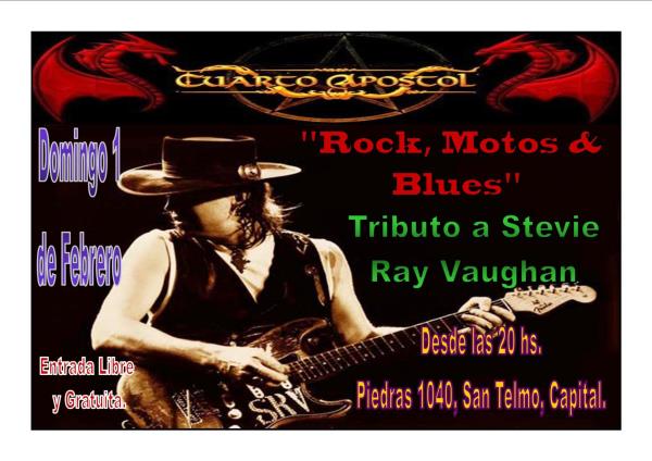 domingo 1-2 mucho rock nroll y un tributo imperdible a stevie ray vaughn, torneos de pool, picadas, pizzas, hamburguesas, el acceso mas comodo y la mejor atencin. te esperamos, 20 hs, piedras 1040, san telmo, cuarto apostol bar. rock, motos blues.