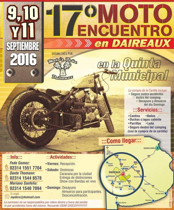 Motoencuentros.com, no se hace responsable por cualquier error u omisión en la información publicada como asi tambien de su contenido, recomendando a los usuarios y visitantes, confirmar la veracidad de la información publicada en Motoencuentros.com con los organizadores de los mismos.
