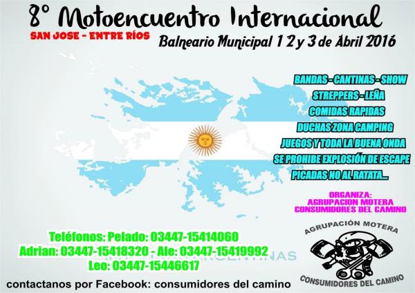 Motoencuentros.com, no se hace responsable por cualquier error u omisión en la información publicada como asi tambien de su contenido, recomendando a los usuarios y visitantes, confirmar la veracidad de la información publicada en Motoencuentros.com con los organizadores de los mismos.