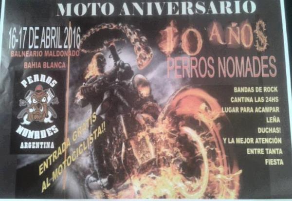 fiesta 10mo aniversario de la agrupacionperros nomadeslos invita a compartir con nosotros este momento tan importante, un evento creado por moteros y para moteros, con todo lo que te gusta de una fiesta!!!.....mas adelante daremos mas detalles para que no te pierdas de nada y ya vallas organizandote para poder venir!!!!