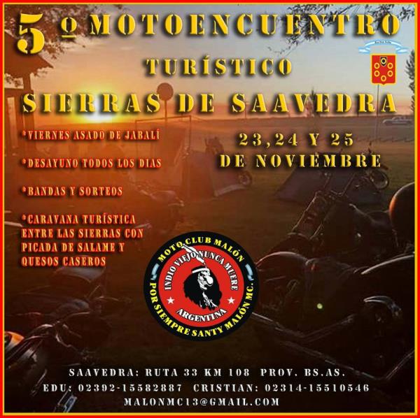viernes a la noche jabali a la parrilla y varias bandas,desayuno gratis los 3 dias,cantina economica atendida por el club,sabado caravana turistica por las sierras con degustacion de quesos y chorizos de la zona,bandas de rock y como banda destacada nuestra raza(ex callejeros)